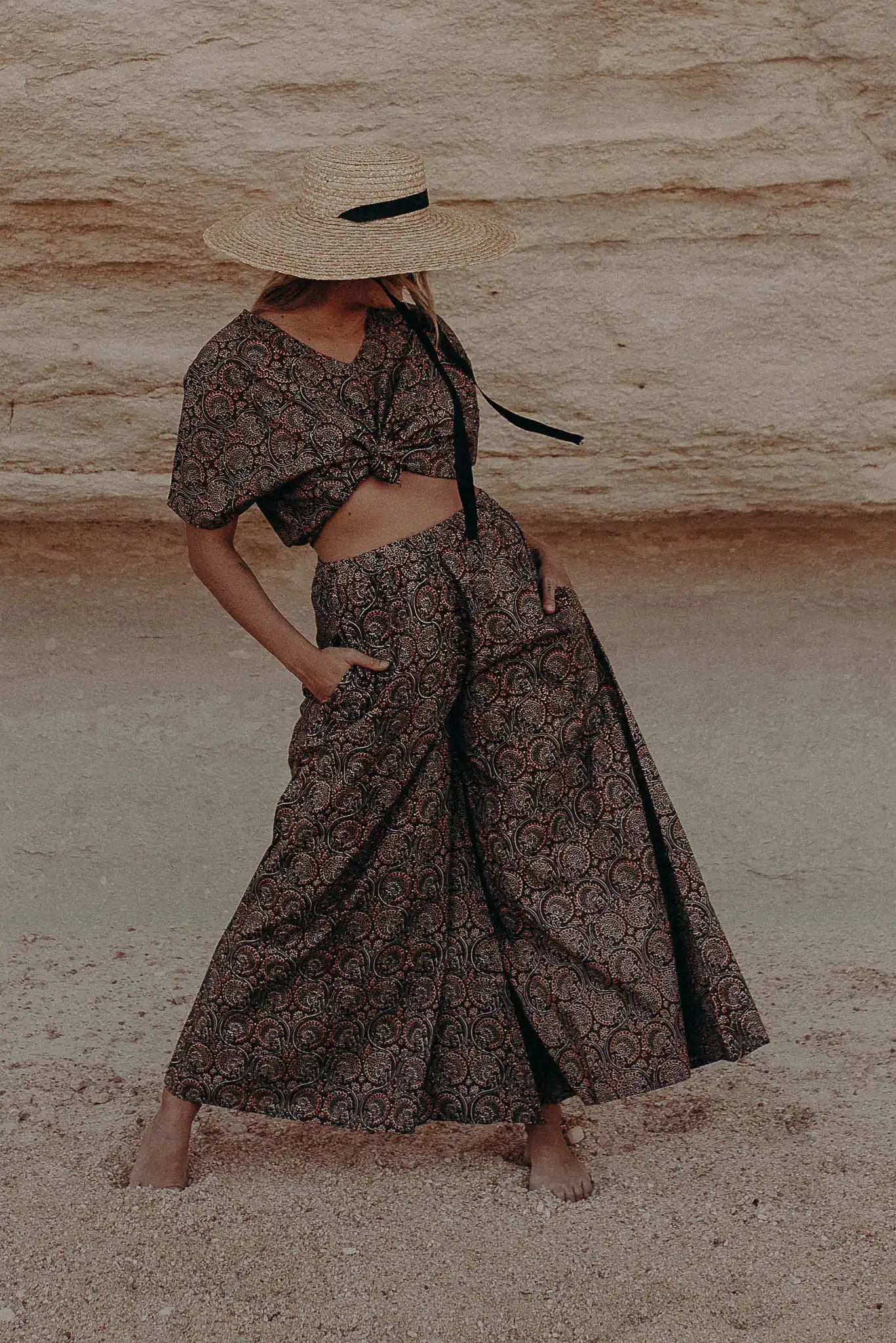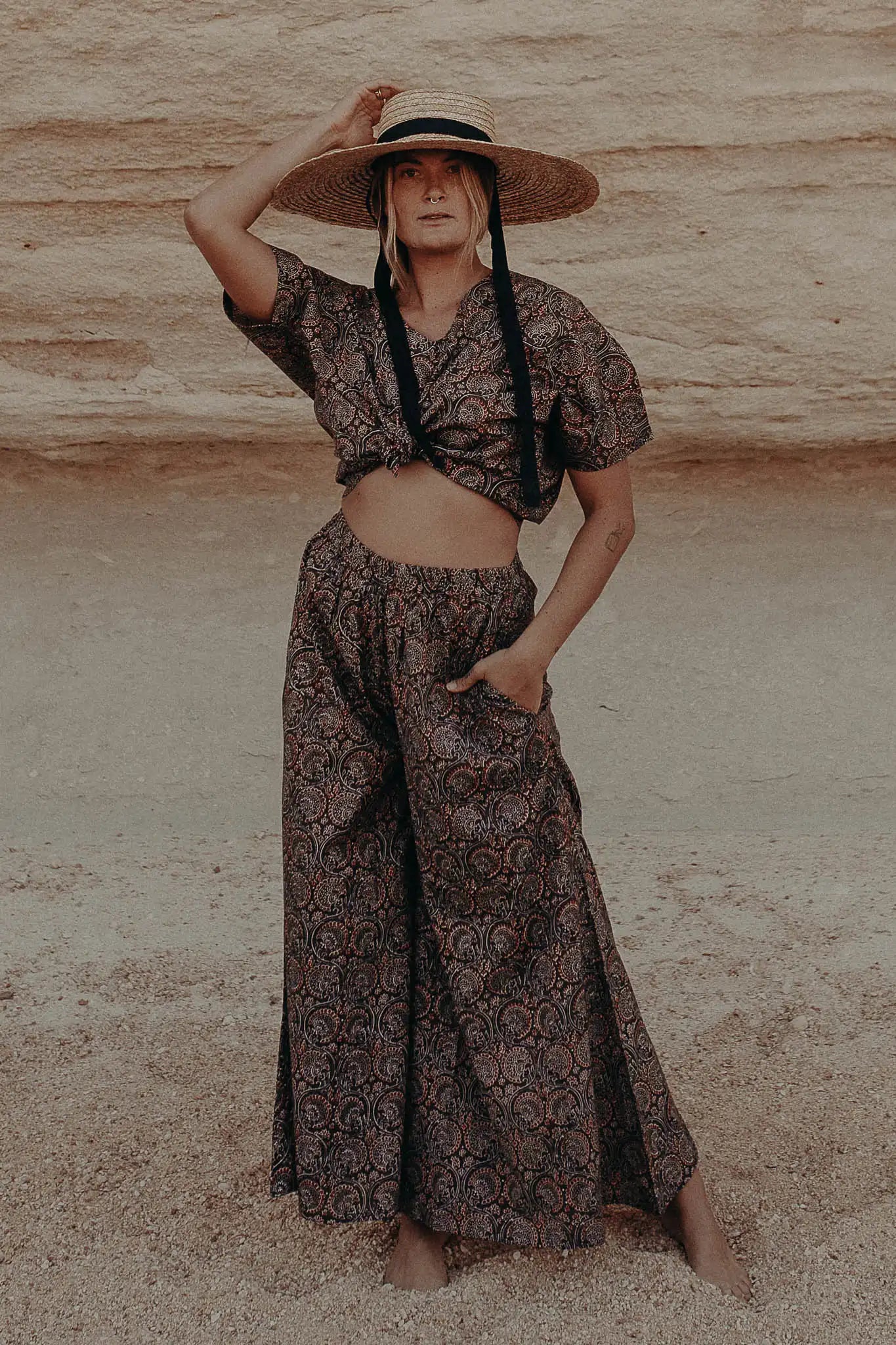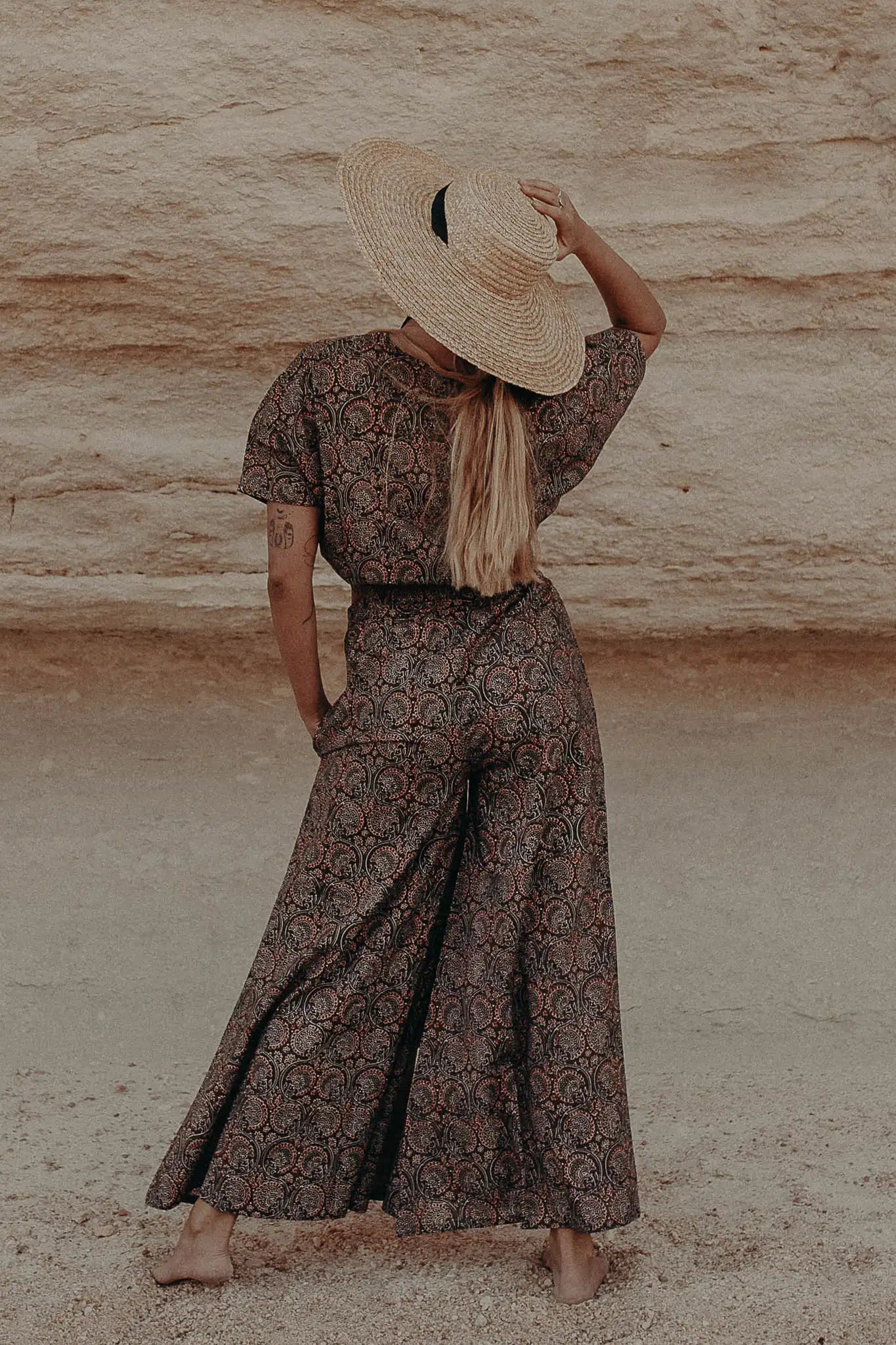 - Wide-leg silhouette for elegance and unrestricted movement