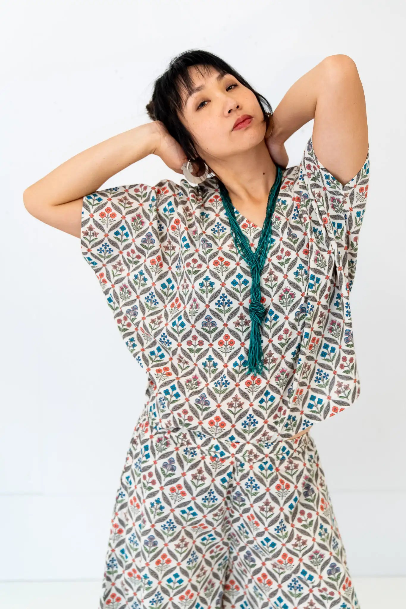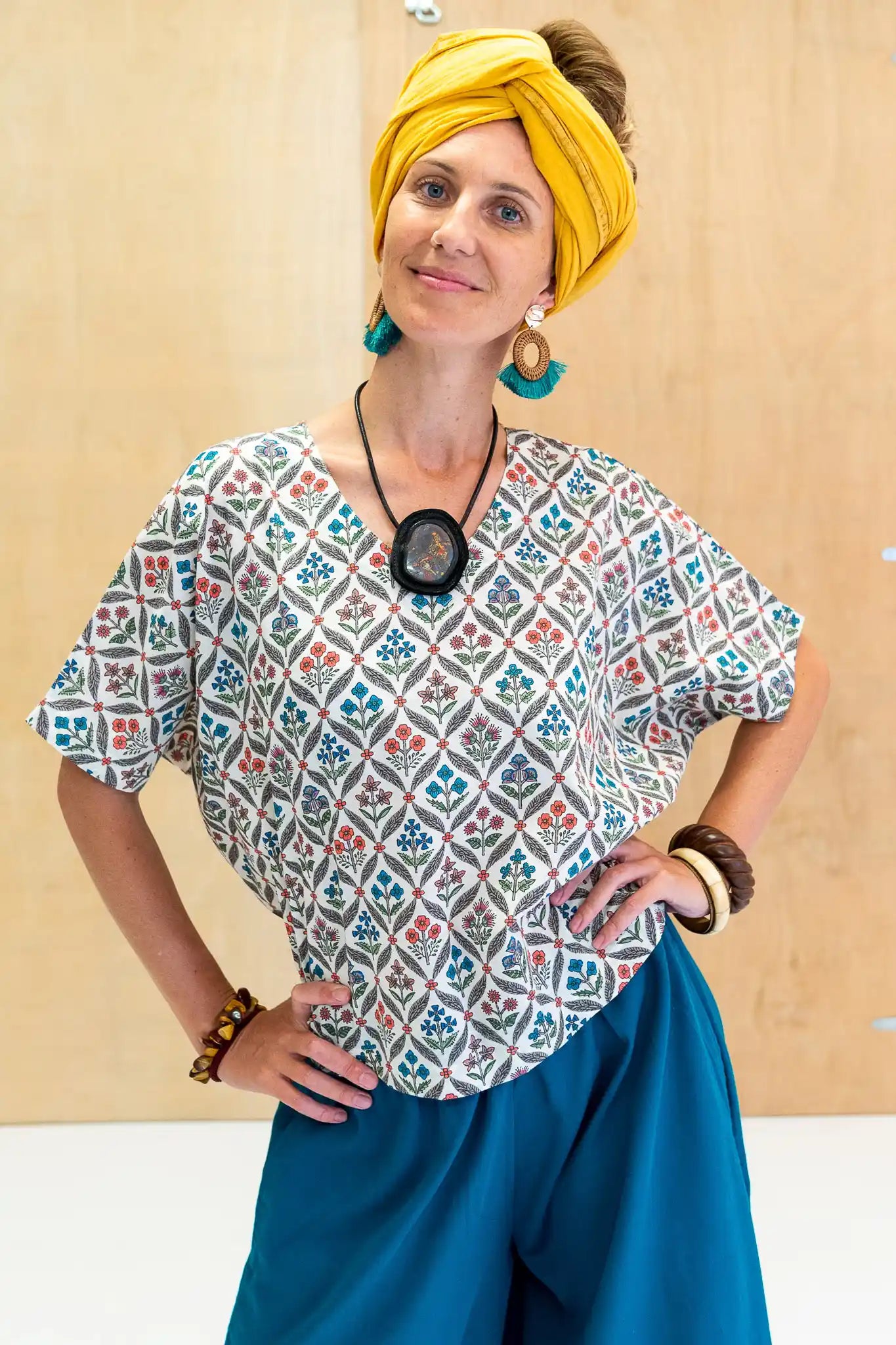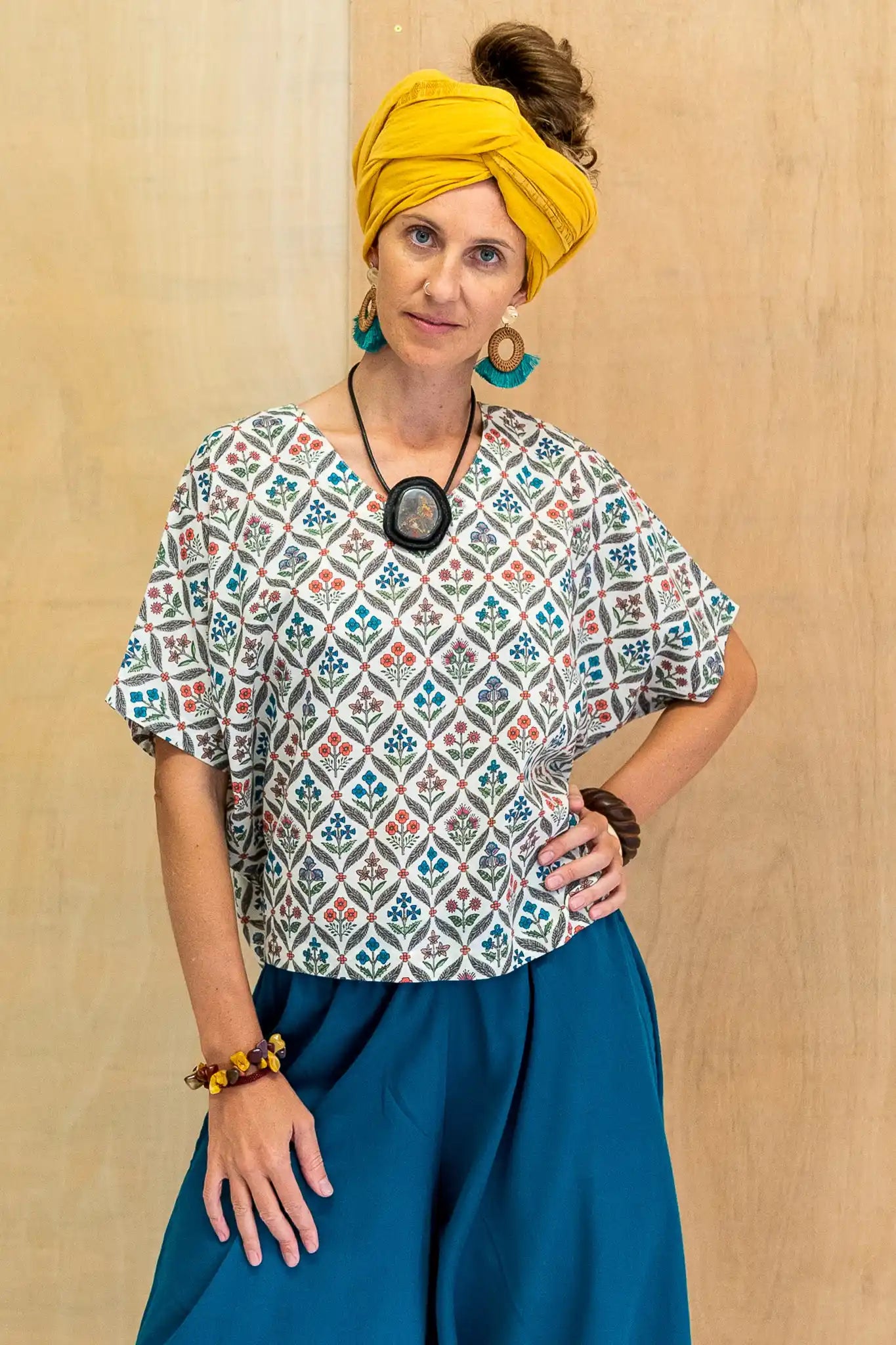 Since our bat wing dress won the peoples choice award we have been inspired to make it into a top. Loose and comfortable, great in summer and winter it pairs especially well with our Annvi Palazzos. Pair it with a long sleeve turtle neck or a full sleeve t-shirt underneath to up the trend factor.