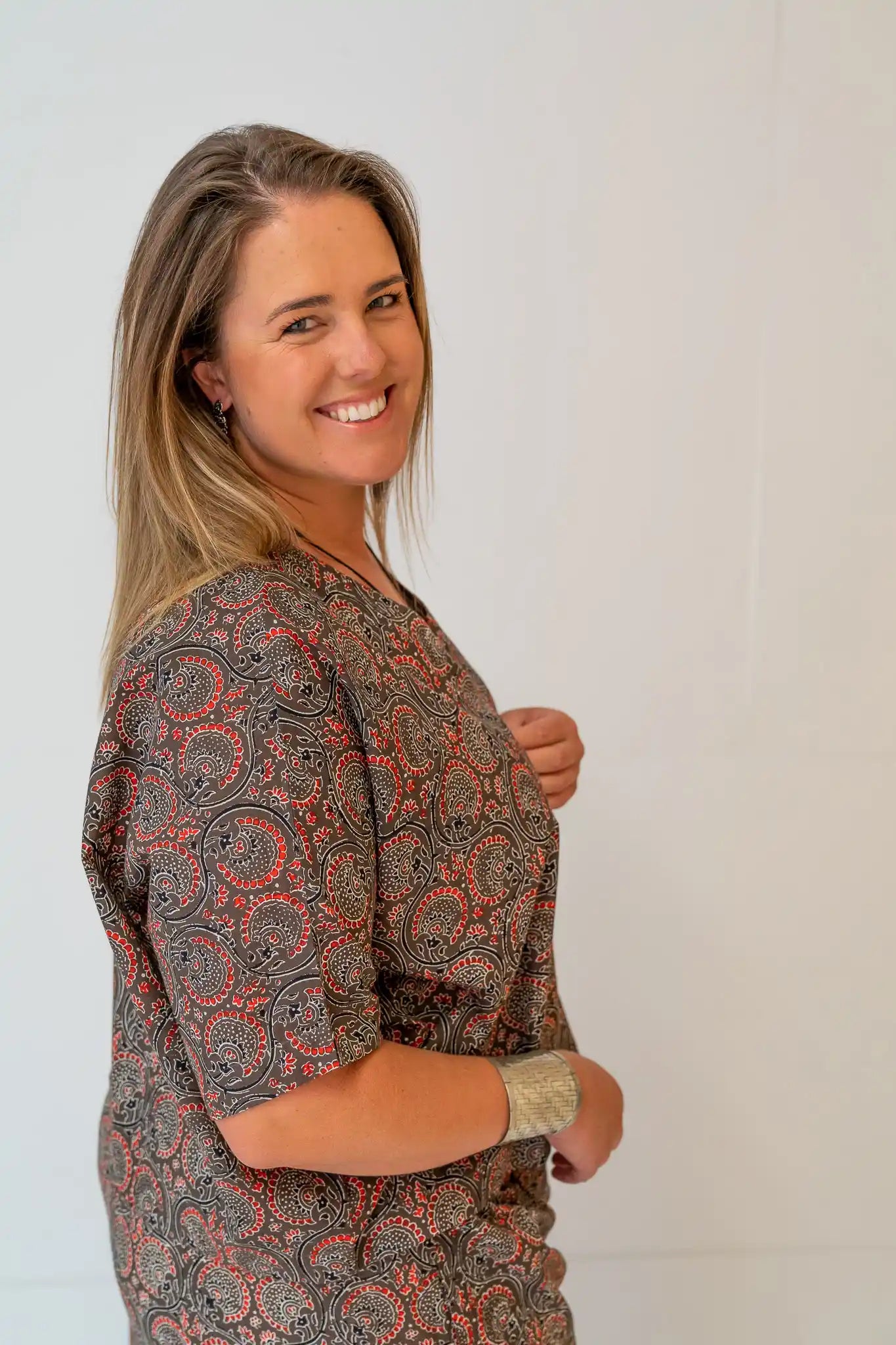 Since our bat wing dress won the peoples choice award we have been inspired to make it into a top. Loose and comfortable, great in summer and winter it pairs especially well with our Annvi Palazzos. Pair it with a long sleeve turtle neck or a full sleeve t-shirt underneath to up the trend factor.