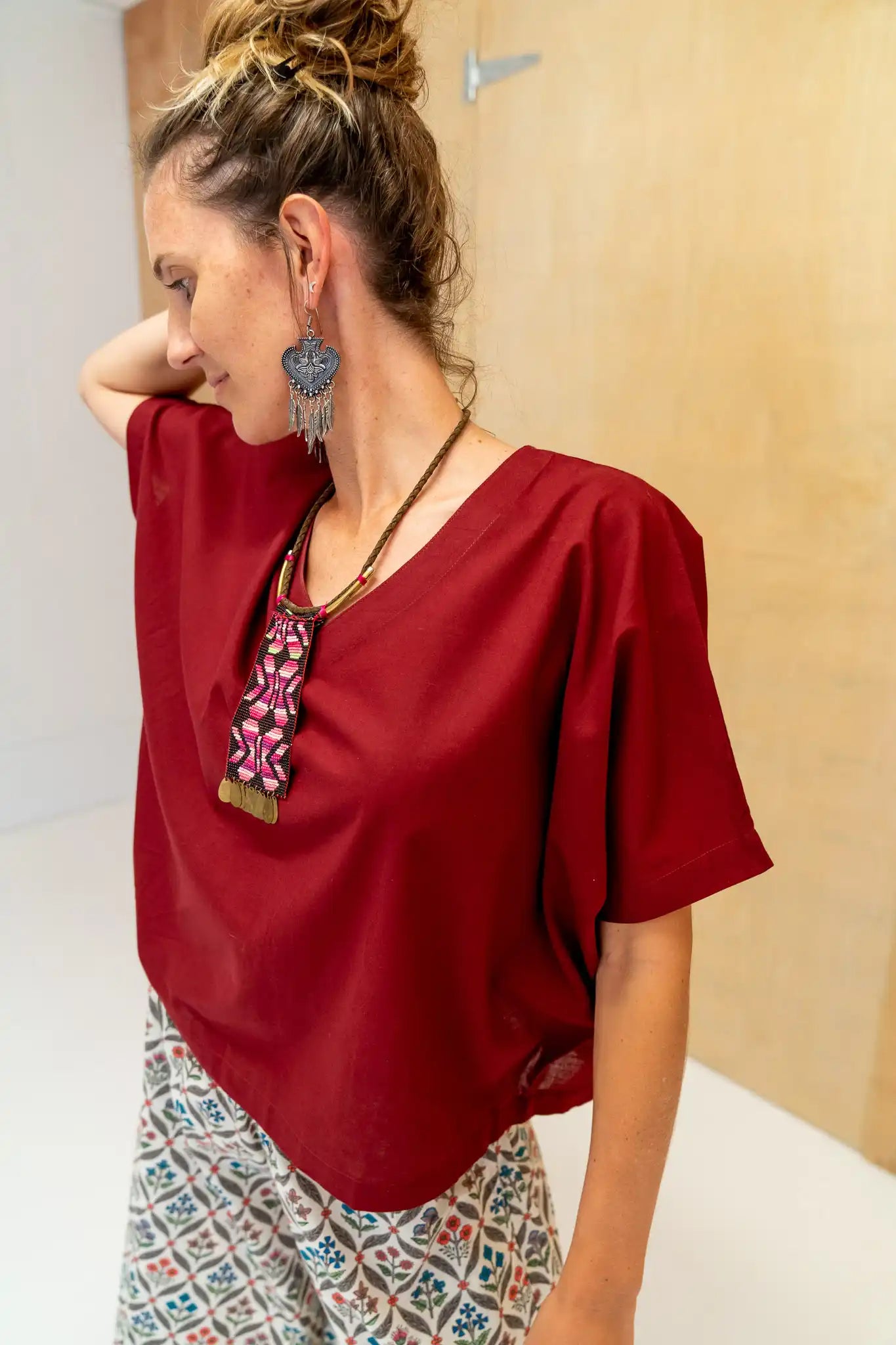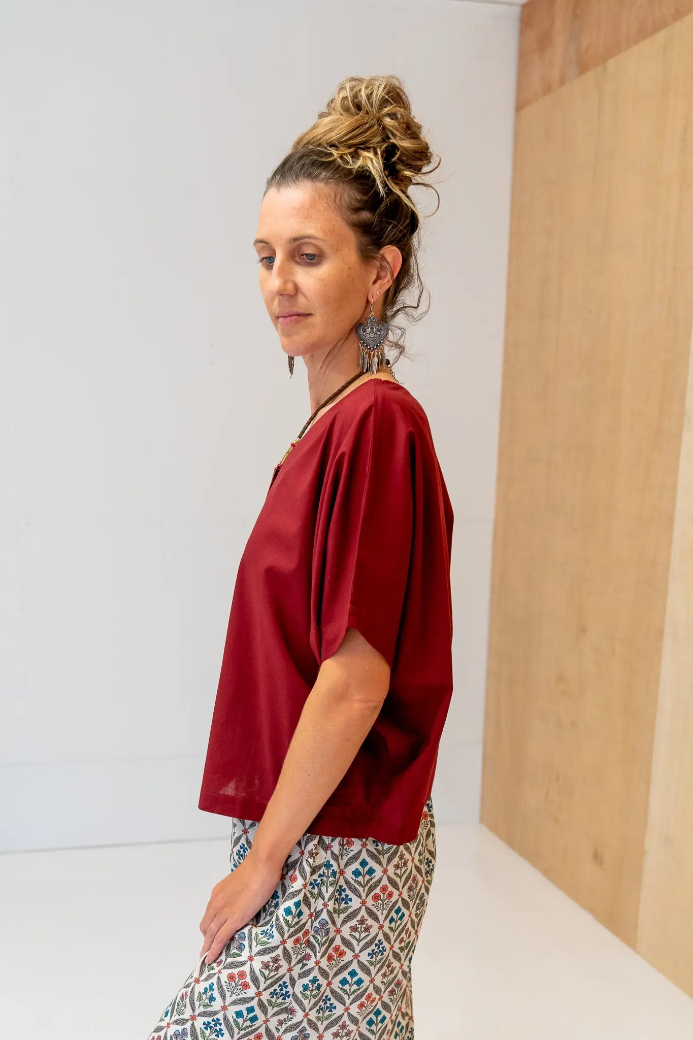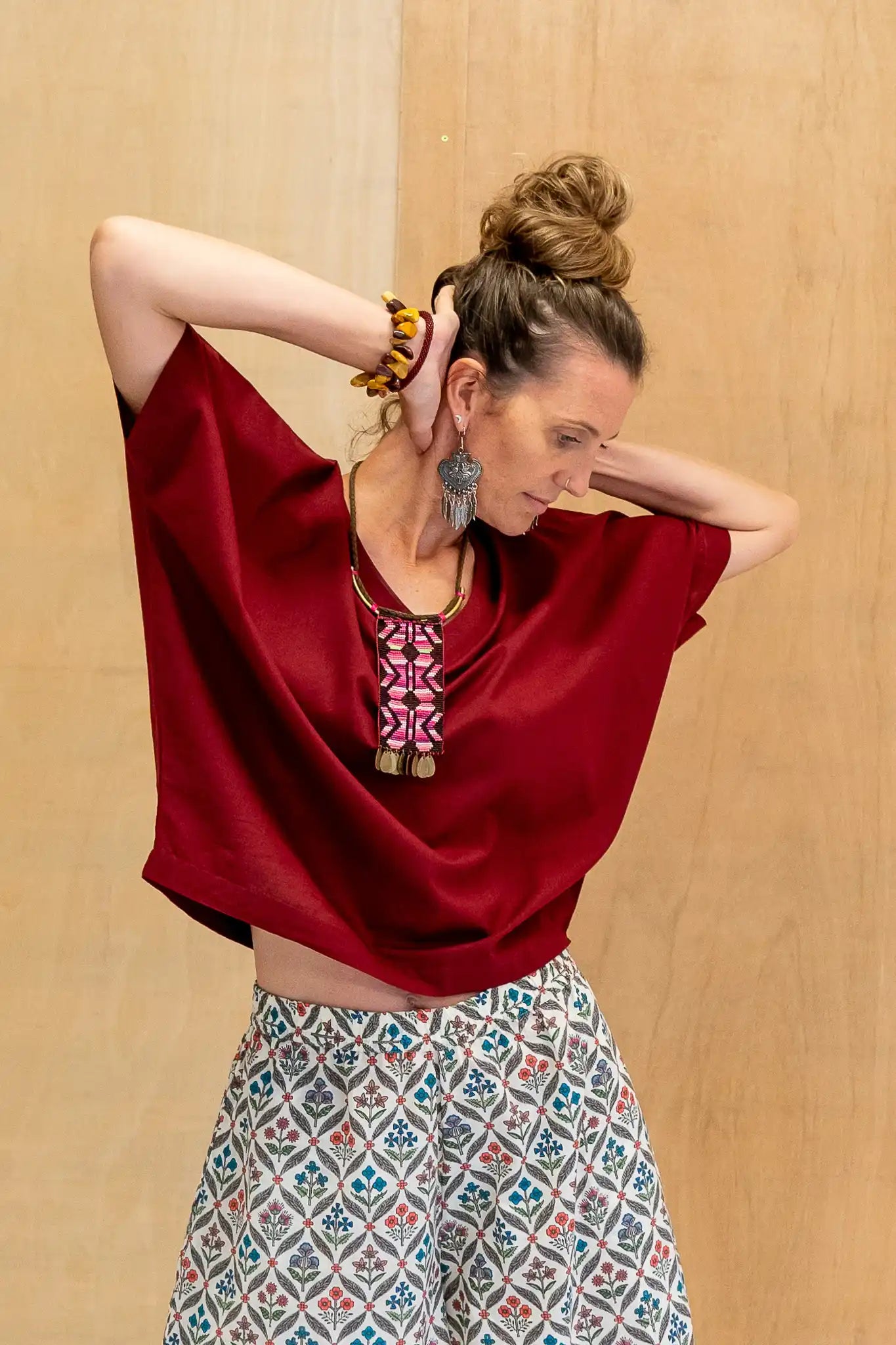 Since our bat wing dress won the peoples choice award we have been inspired to make it into a top.Ā Loose and comfortable, great in summer and winter it pairs especially well with our Annvi Palazzos.Ā Pair it with a long sleeve turtle neck or a full sleeve t-shirt underneath to up the trend factor.Ā