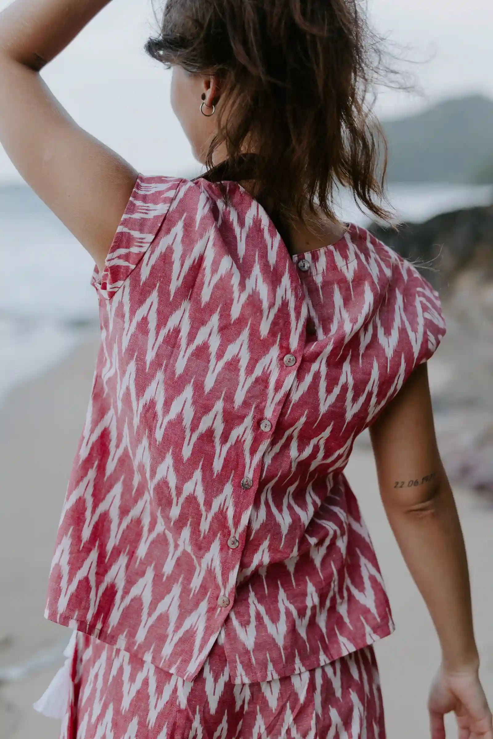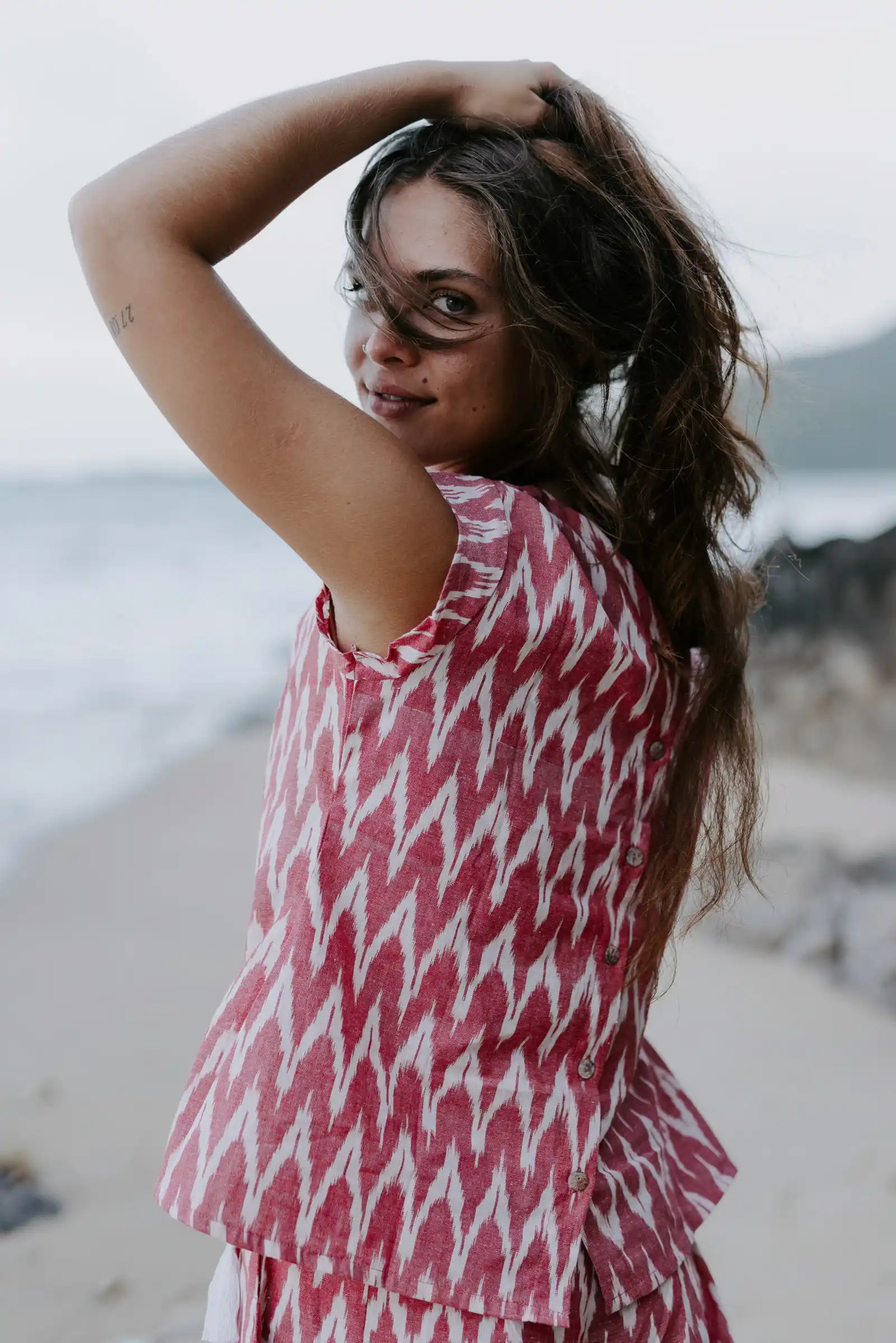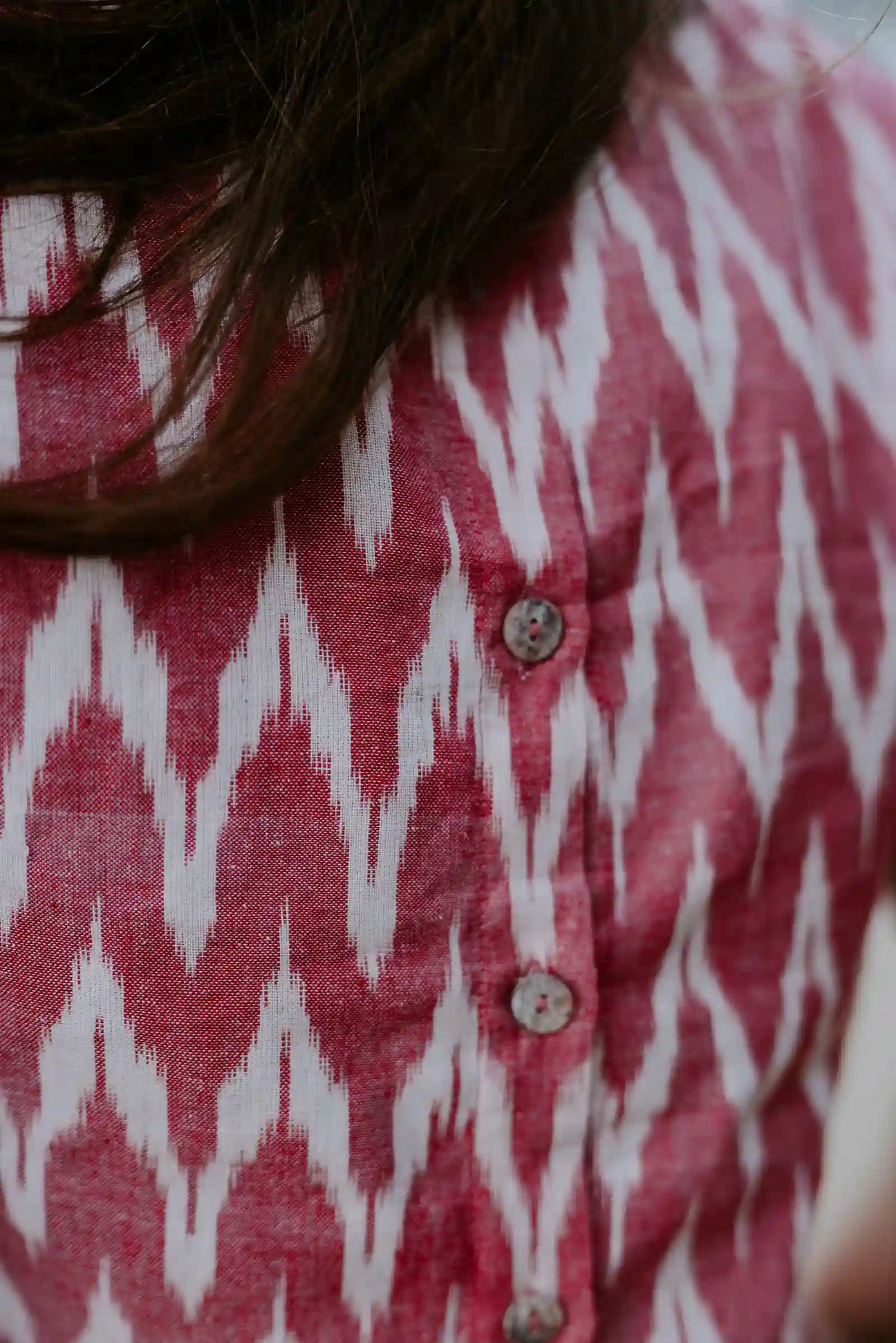 Crafted from handwoven cotton ikat, it feels as soft and breathable as it is durable, making it the perfect piece for work, casual outings, or weekend adventures.
