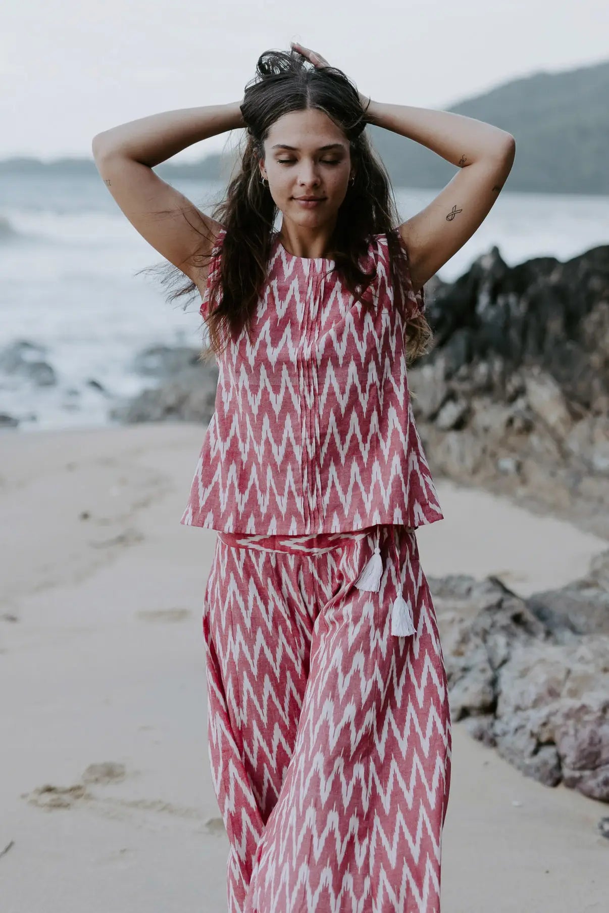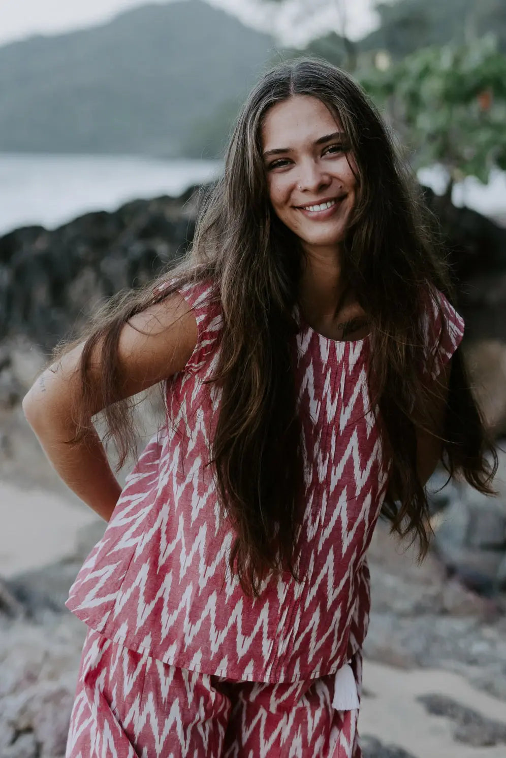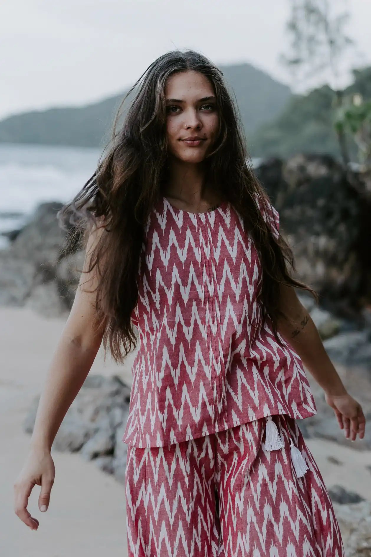Crafted from handwoven cotton ikat, it feels as soft and breathable as it is durable, making it the perfect piece for work, casual outings, or weekend adventures.