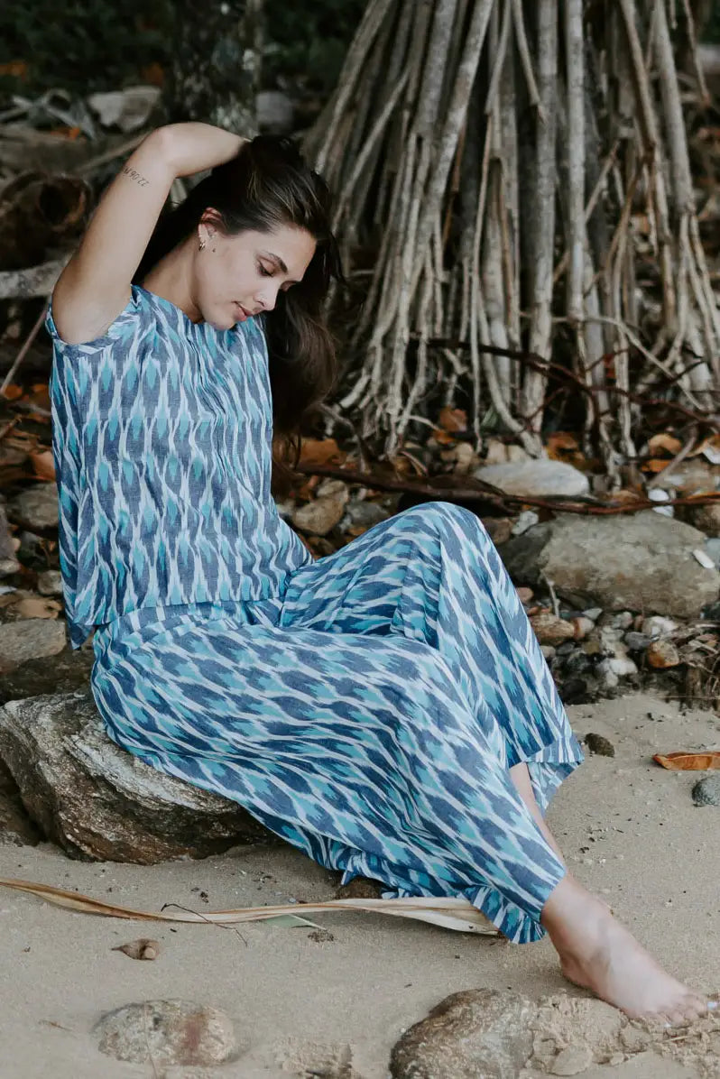 Tara Shirt - Turquoise Ikat